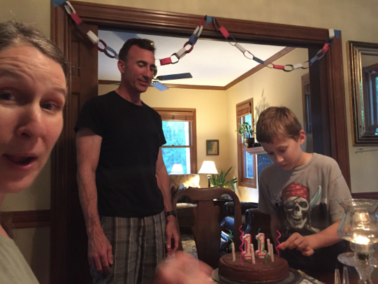 Usually I have my real camera out for birthday parties, but I got busy and forgot to get it until the candles were lit. By the time I found my flash the cake was getting covered in wax and no one had any patience. So there you go, badly-lit phone pics.